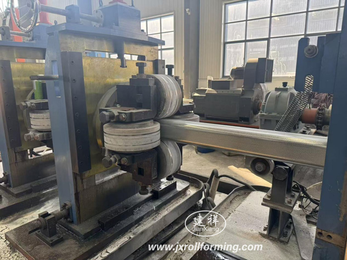 Raw material- uncoilding with coil car- coil head shovel, 2+5 leveler- coil head shear & welding- material accumulating (horizontal type)- leveler- main forming- high frequency welding- removing burrs outside of weld seam- cooling- sizing- roughly straightening- fixed length cutting- outer table -auto stack.